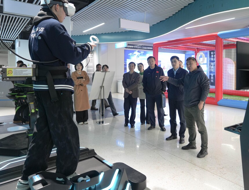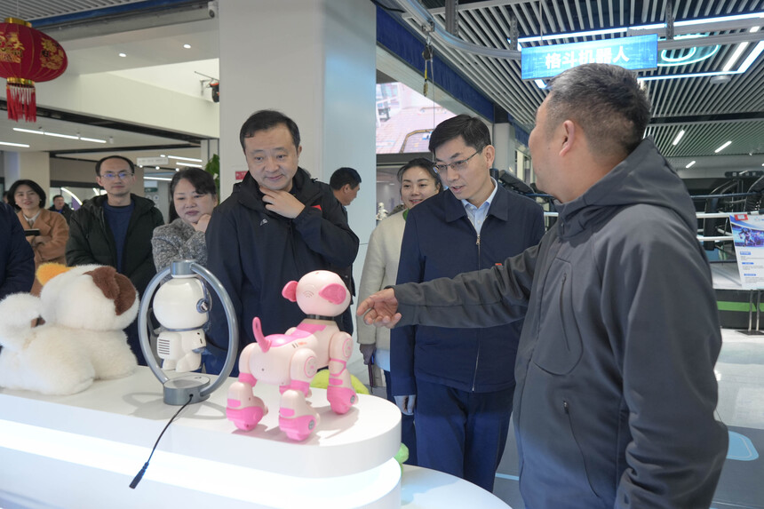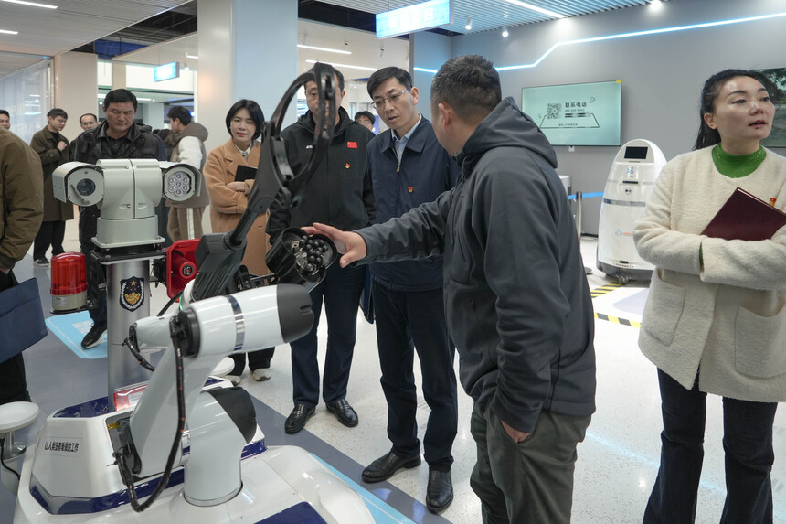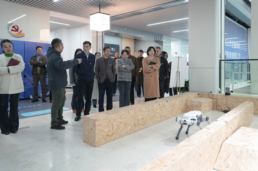 作为本次主题党日的重要环节,调研组一行走进9500金沙集团线路大世界展厅,深入了解全球首家机器人9S店的运营模式、场景应用及各类机器人产品。在肖湘江的引导下,党员干部们近距离观摩了智慧康养、智能文创、健康校园、安保巡逻等50余个应用场景的机器人产品演示。从中医健康机器人、看护机器人到人形机器人乐队、跑酷机器狗,再到安保机器人、消防机器人,9500金沙集团线路大世界展现出的丰富产品矩阵与强大的场景适配能力,让全体党员干部印象深刻。大家不时驻足询问技术细节与应用案例,对企业将人工智能技术与实体经济深度融合、以科技创新激发消费新活力的实践给予高度评价。