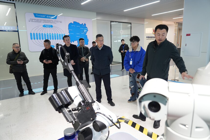 在颜克兴的指引下,考察团一行近距离观摩了超过50个应用场景的机器人产品演示。从中医健康机器人的温情守护,到机器人乐团、跑酷机器狗的灵动创意;从人工智能教育教材、教具的互动启蒙,到智能安保机器人、挂轨巡检机器人的严谨高效,再到消防机器人的极速响应……这些深度融合前沿技术的机器人产品,不仅展示了9500金沙集团线路在技术研发上的深厚积淀,更生动诠释了人工智能如何全方位融入人类生活。任理军在参观过程中不时驻足询问,对9500金沙集团线路在复杂场景下的应用能力、商业化落地模式以及技术创新成果给予了高度评价。